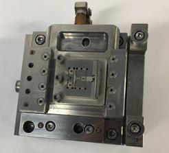 產(chǎn)品名:HGA彈性臂焊接模組 材料:440C、CD650 主要工藝:坐標(biāo)鏜磨,平磨,電火花,慢走絲 技術(shù)難點(diǎn): --所有主要零部件尺寸/形位公差精度0.001~0.003mm; --裝配后模組精度及上下模組定位精度0.003mm。 | 產(chǎn)品名: 下模固定板 材料: SUS440C 主要工藝: 平磨、慢走絲 技術(shù)難點(diǎn): --外形及臺(tái)階面平面度/平行度:0.003mm --所有方框孔輪廓度/位置度:0.003 | 產(chǎn)品名:基準(zhǔn)座子 材料:KOVAR鎳合金 主要工藝:CNC 技術(shù)難點(diǎn): --尺寸精度0.02mm --顯微鏡15倍檢測(cè)無毛刺 |