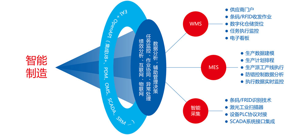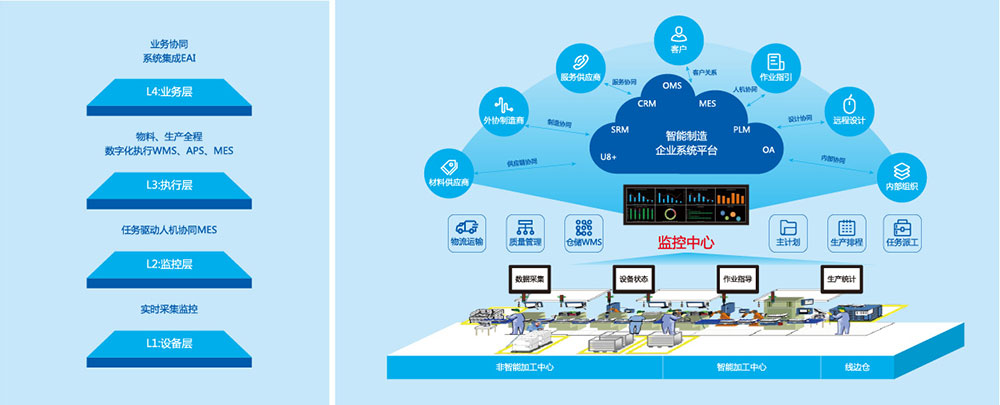 智能制造不但要生產(chǎn)自動化、信息化,更需跨業(yè)務層級整合信息系統(tǒng),實現(xiàn)業(yè)務層、執(zhí)行層、監(jiān)控層、設備層的互聯(lián)互通。MES系統(tǒng)是鏈接業(yè)務層與設備監(jiān)控層的橋梁,通過MES可以實時掌控生產(chǎn)進度與監(jiān)控異常。