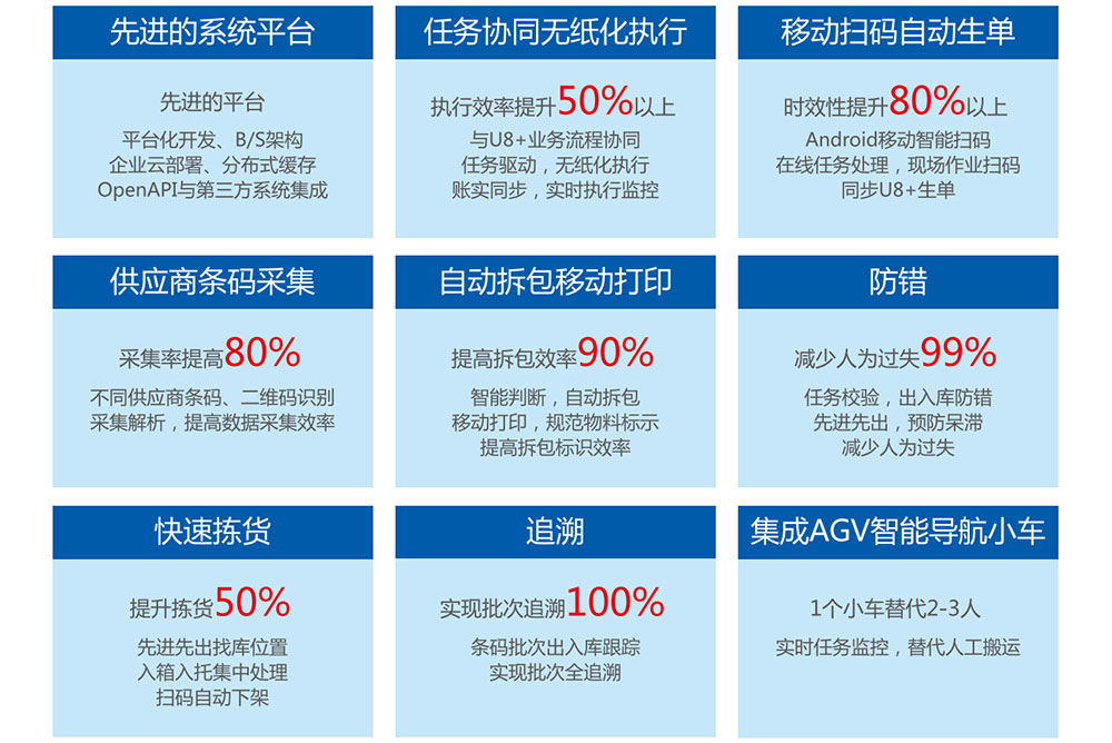 公司技術(shù)WMS倉儲執(zhí)行管理系統(tǒng)采用最新的信息網(wǎng)絡技術(shù),通過條碼/RFID技術(shù)、移動打印、二維碼解析、AGV智能導航小車及先進生產(chǎn)管理理念,能夠有效的對倉庫流程和空間利用進行管理,實現(xiàn)最小包裝跟蹤管理、批次管理、先進先出管理、快速掃碼出入庫和動態(tài)盤點,提高企業(yè)倉庫空間利用率及員工工作效率。
