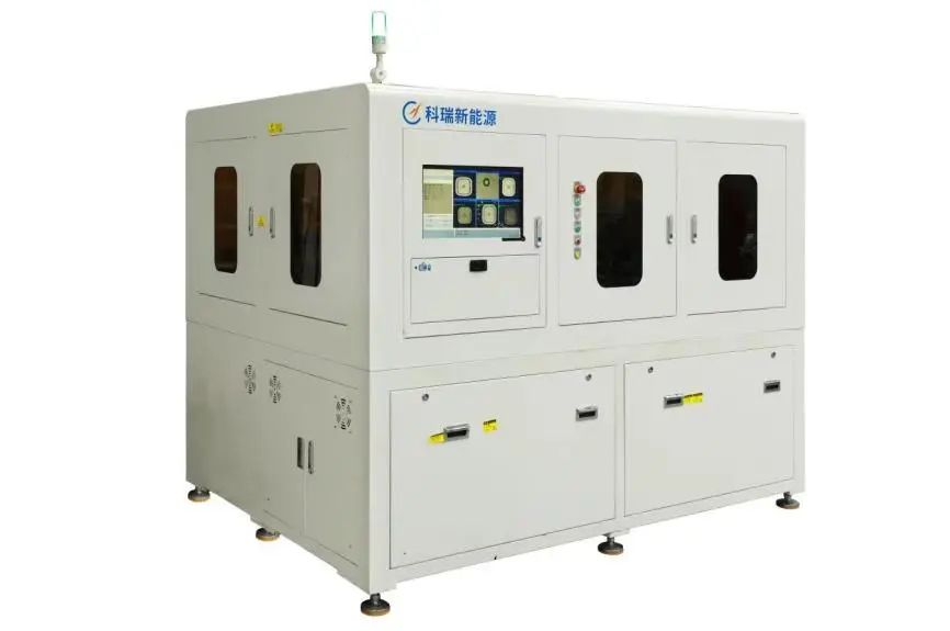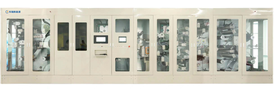 激光模切分條一體機(jī)主要應(yīng)用于極片極耳成型與極片分條,制成品可供應(yīng)疊片設(shè)備與卷繞設(shè)備。采用激光高速切割技術(shù),搭配獨(dú)立自適應(yīng)除塵系統(tǒng)與排廢料系統(tǒng),在獨(dú)立空間內(nèi)進(jìn)行極耳切割;通過收放卷裝置、牽引裝置與張力控制裝置實(shí)時(shí)聯(lián)動,控制極片穩(wěn)定高速傳輸,通過五金刀模進(jìn)行極片分條,并采用高速相機(jī)自動識別切割質(zhì)量、尺寸精度與來料異常,及時(shí)排除品質(zhì)不良,保證產(chǎn)品質(zhì)量安全。